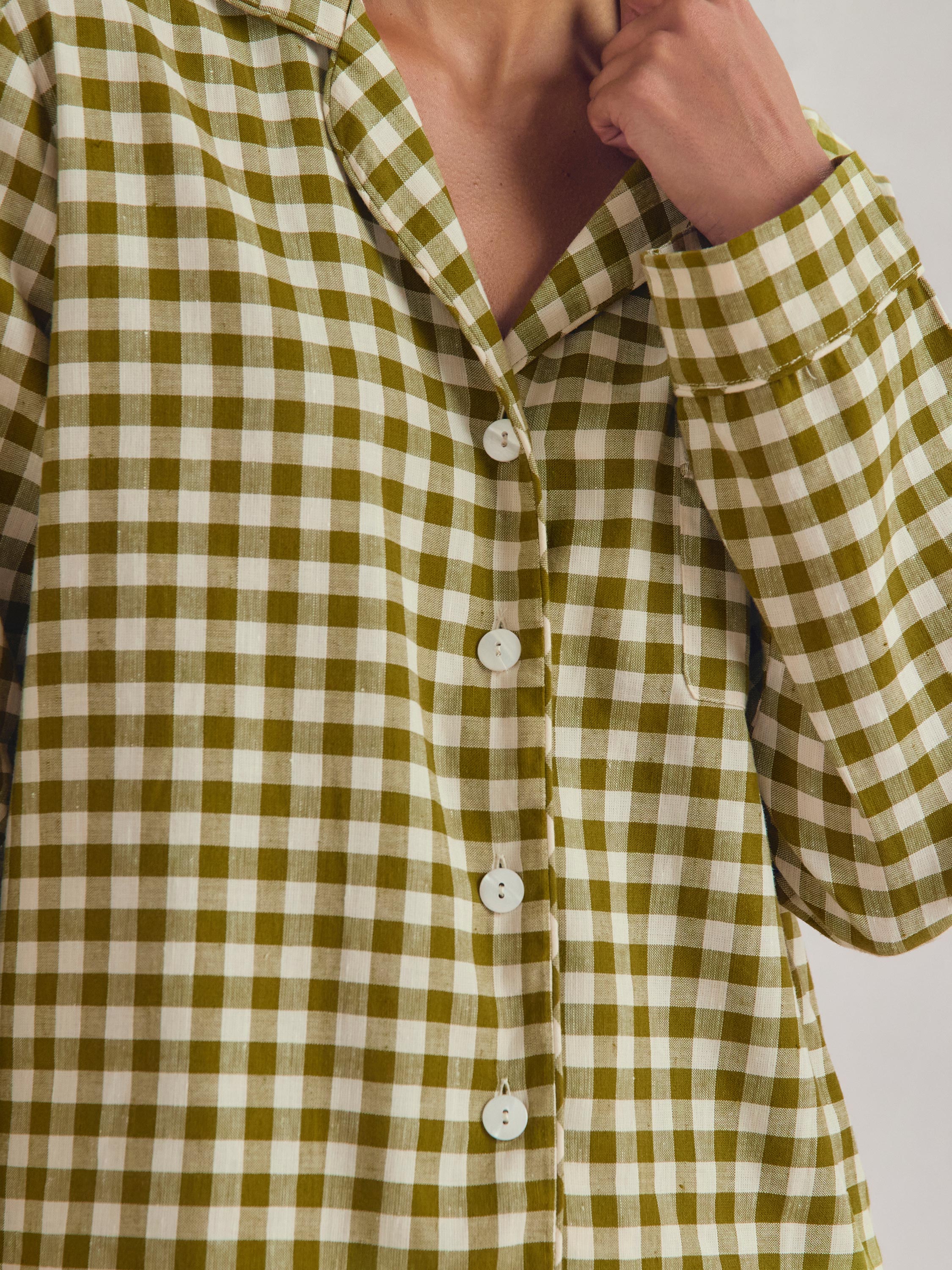 Botanical Green Gingham Linen Blend Pyjama Trouser Set