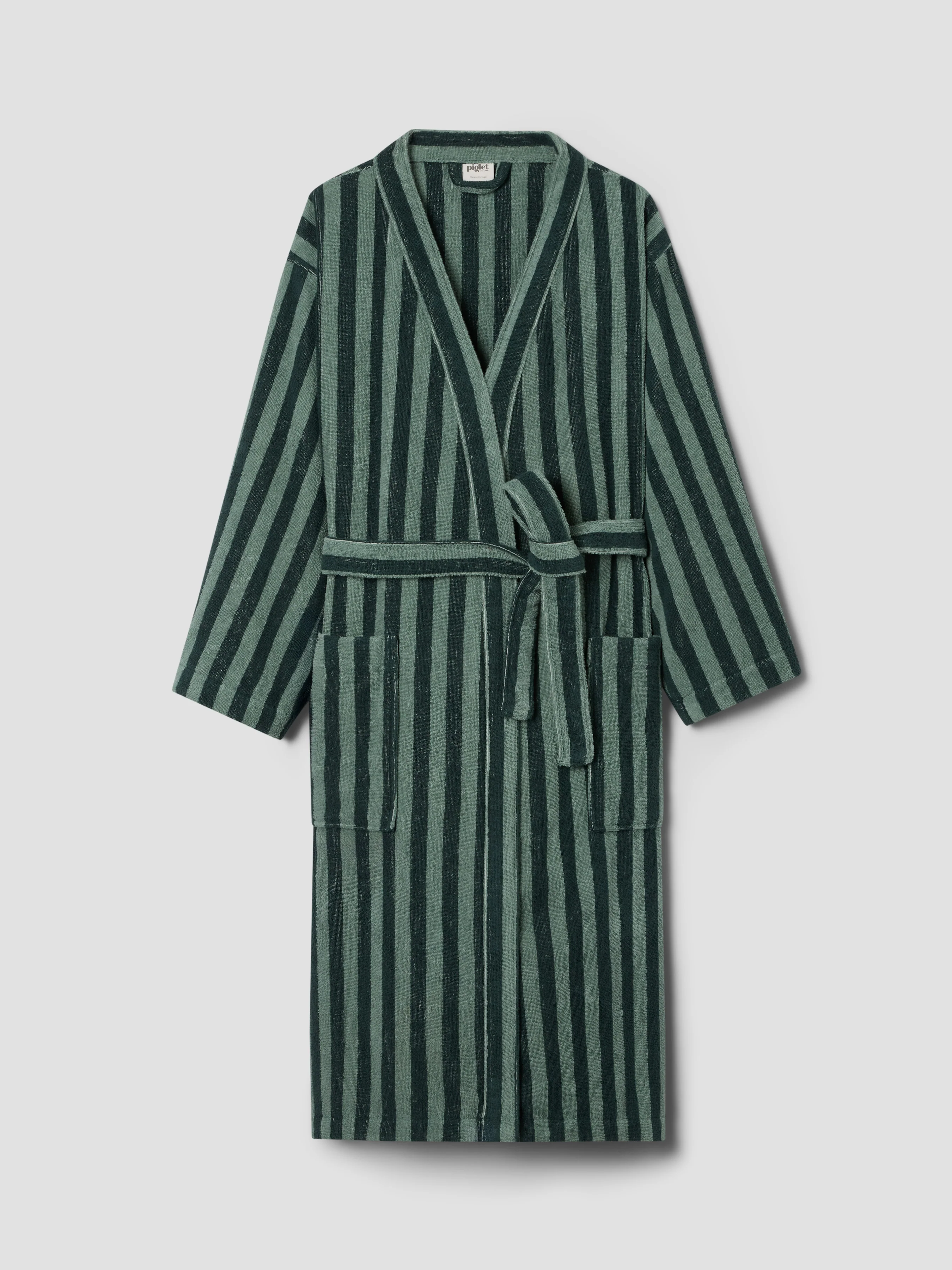 Envelope yourself in plush, natural comfort with our Pine Green Pembroke Stripe Cotton Robe. Made from sustainably sourced zero-twist cotton, this absorbent bath robe is super soft and smooth – just like our best-selling towels. Our striped robes feature handy side pockets, an adjustable waist tie and kimono-inspired sleeves.