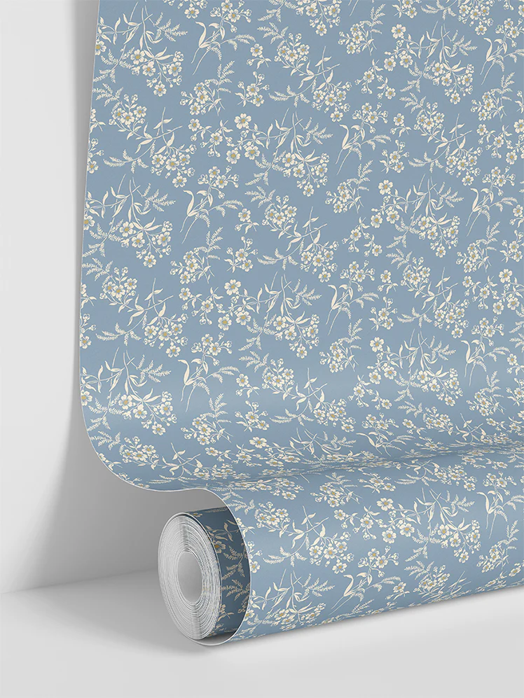 Warm Blue Camille Floral Wallpaper