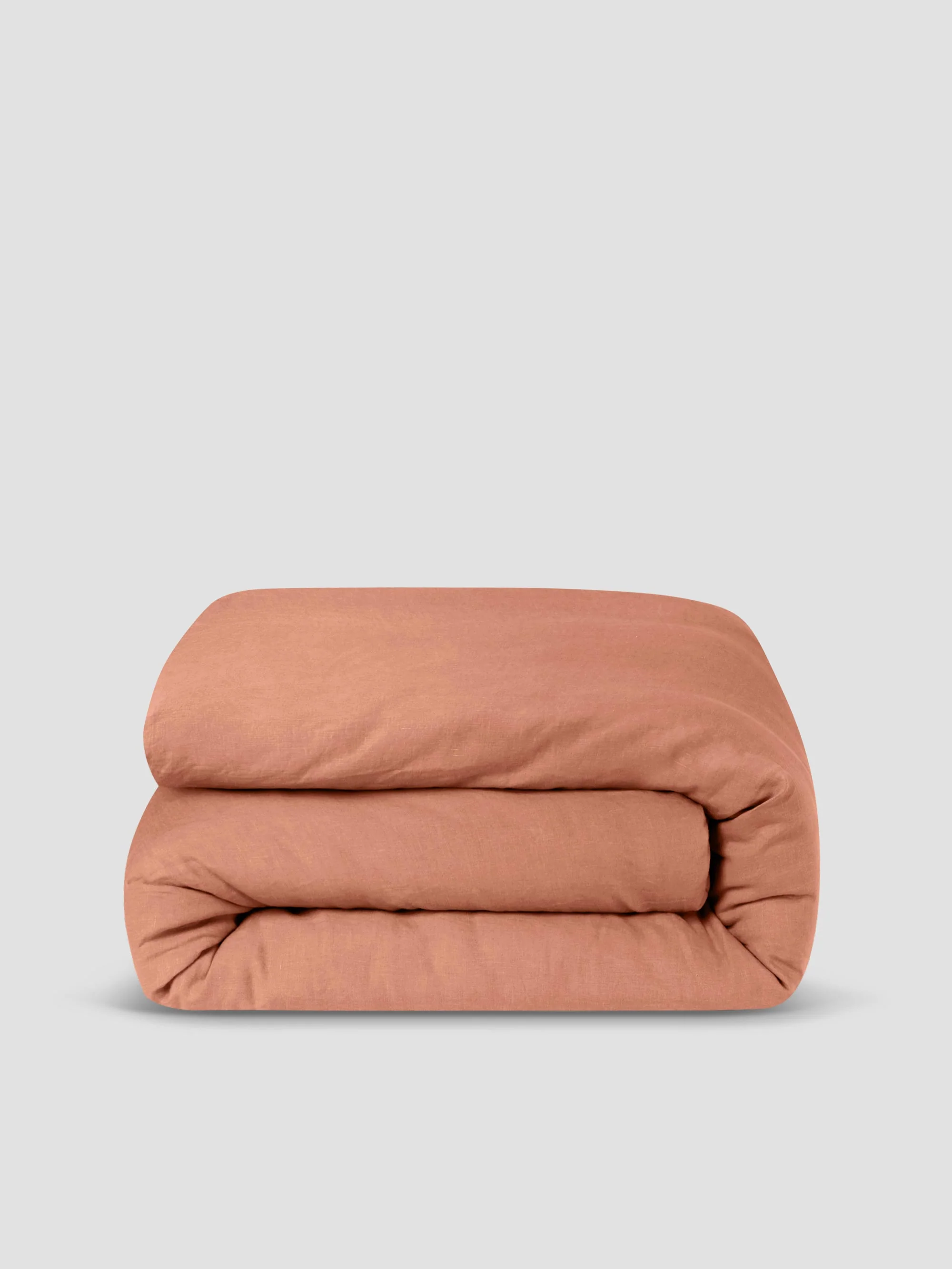 A vintage-inspired dusky pink, our Warm Clay linen duvet cover is perfect for creating a relaxing retreat. Made from high-quality European linen, our linen duvet covers are both durable and breathable, ensuring a comfortable night's sleep every time.